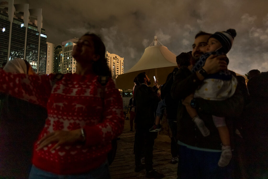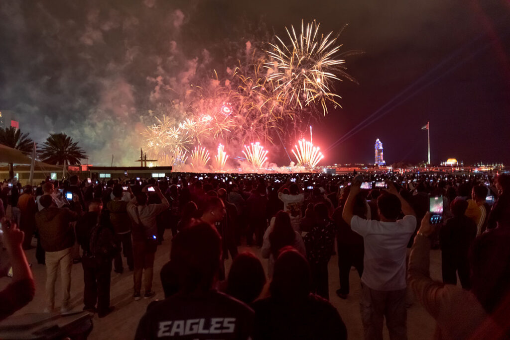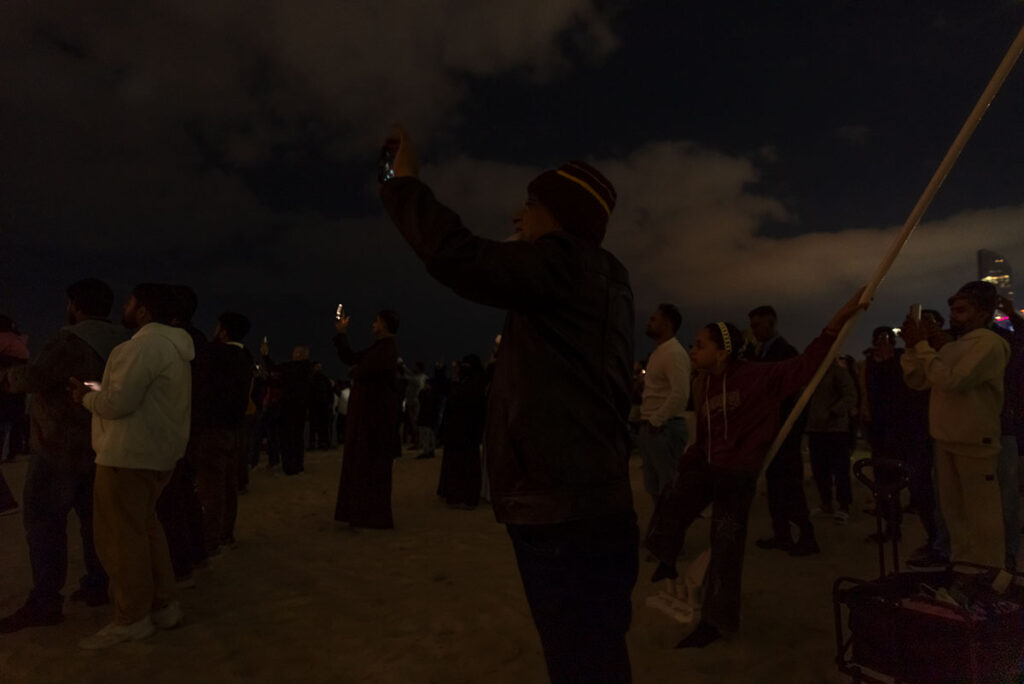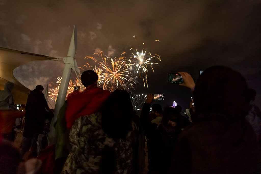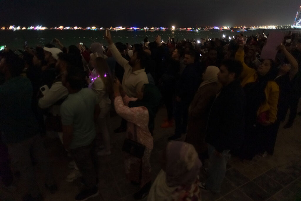 Gestern, in der Silvesternacht, am Strand von Abu Dhabi, knapp 140 Kilometer westlich von Dubai, wurde ich erstmalig Zeuge der berühmten arabischen Gastfreundschaft. Anderthalb Stunden vor Beginn des Feuerwerks suchte ich nach der besten Stelle, um ein paar farbenfrohe Fotos mitzunehmen, als mich plötzlich ein kleiner Junge in die Seite stupste. Er gehörte zu einer Gruppe von drei schwarz verhüllten Frauen und einem Mann, Mitte Zwanzig. Auf die Frage, was denn in dem kleinen Becher sei, den er mir freudestrahlend entgegenhielt, rief er fröhlich: „Chai Karak“. Eine der Frauen übersetzte das für mich ins Englische: schwarzer Tee mit Milch, Zucker und Zimt. Im Grunde also nicht viel anders, als Briten ihren Tee genießen.