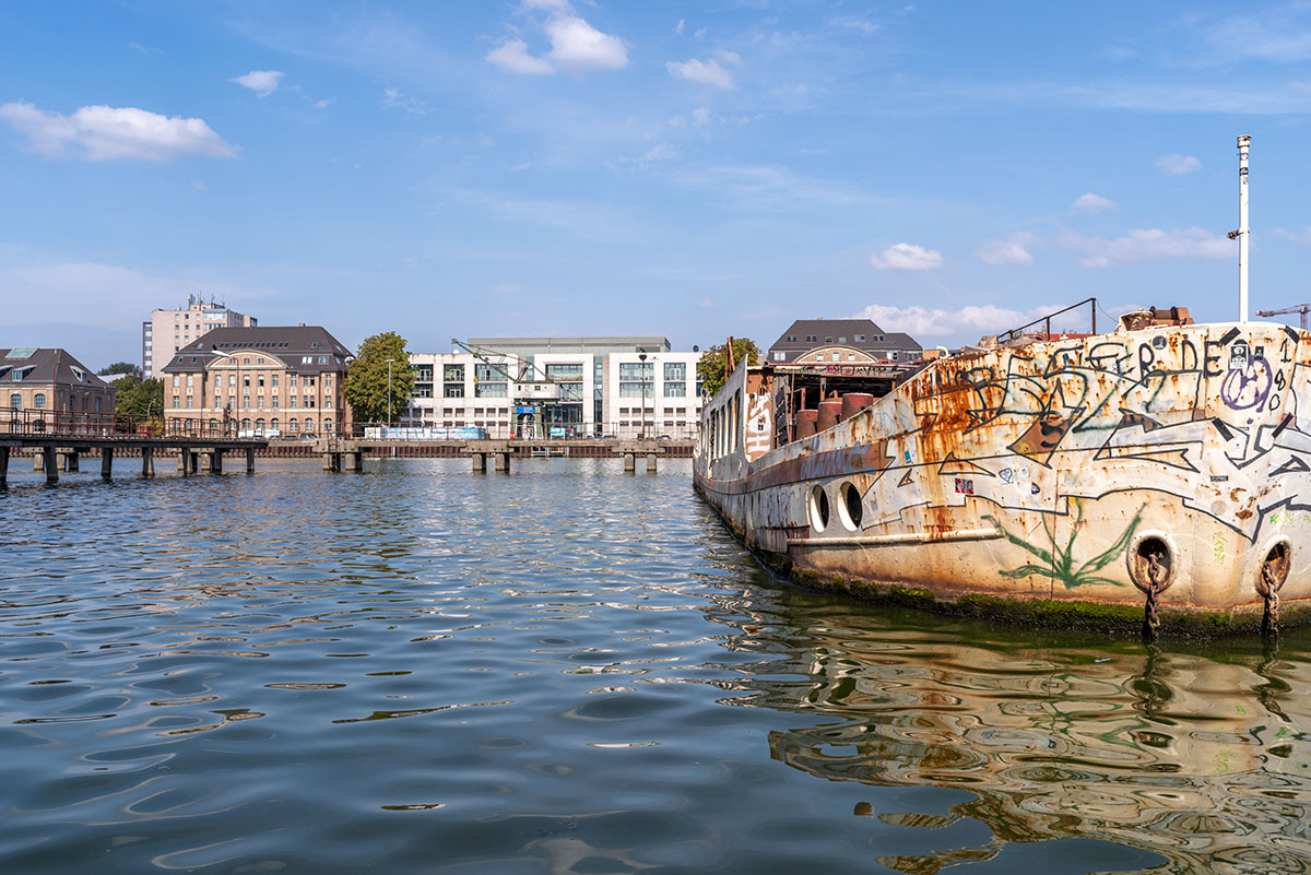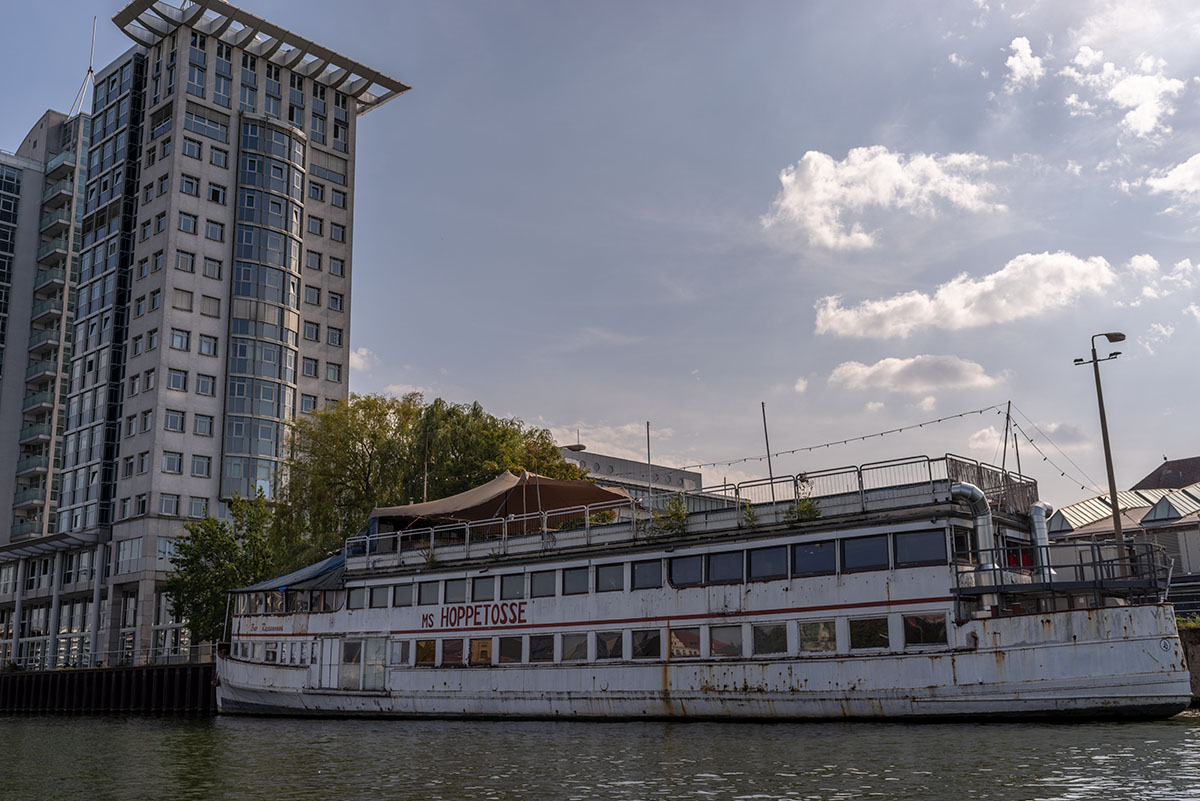 Da bin ick doch neulich mibm Schüff uffe Spree rumjeschübbat, vom historüsch’n Haf’m ßum Müggelsee, oda fast bis da, weil via Schtundn nämlüsch nich ausreich’n tun … asso für hin un‘ ßurück..