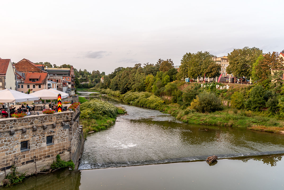 Vom Bahnhof also am besten die Berliner Straße hinunter bis zum Postplatz, dieser alleine ist mit seinem Springbrunnen und den Sitzbänken eine Reise wert. Dort zeigt die Stadt, die nur wenige Jobs zu bieten, dafür aber viel Arbeitslosigkeit und wenig Steuereinnahmen zu verkraften hat, dass man eine Stadt auch mit wenig Geld attraktiv gestalten und in Schuss halten kann.