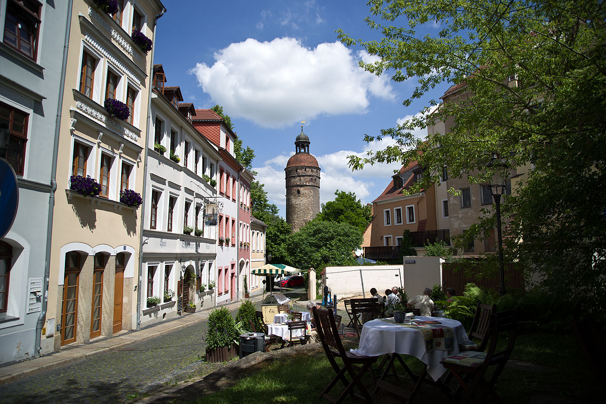 Görlitz hatte Glück: Die Stadt überstand den Krieg fast ohne Zerstörungen. Die Bomben fielen 100 Kilometer weiter und machten Dresden dem Erdboden gleich. Was der Krieg nicht schaffte, hätte fast die Misswirtschaft der DDR erledigt. Statt die jahrhundertealten Häuser zu sanieren, baute man lieber hässliche Plattenbauten im Norden der Stadt, die Altstadt verfiel. Gerade noch rechtzeitig kam die Wende und somit die nötigen Millionen, um all die vergammelnden Baudenkmäler zu retten. Sowohl die EU als auch private Spender füllten die Görlitzer Stadtkasse. Ein anonymer Spender beglückte die Stadt über längere Zeit mit einer Million jährlich, und ausnahmsweise gelangte das Geld nicht in die Hände von korrupten Dilettanten, sondern besorgten Fachleuten, die behutsam und mit viel Geschmack aus den Ruinen wahre Meisterwerke erschufen. Auch wenn noch einige Bruchbuden verblieben sind und nicht alles gerettet werden konnte, ist der sanierte Rest ein einzigartiges, märchenhaftes Juwel, quasi ein sächsisches Auenland, weil die vielen Gebäude aus verschiedenen Jahrhunderten, auf natürliche Weise nebeneinander gewachsen, eine einzigartige Mischung ergeben, die man sonst nirgendwo findet, und die Fotografen wie mich in Entzücken versetzt. Auch die Lage ist für Touristen ideal, man muss gar nicht weit laufen, um all die Sehenswürdigkeiten zu erkunden, alles liegt dicht beieinander. Am besten startet man am Bahnhof und flaniert dann nach Norden, die Stadtteile im Süden sind zwar ganz hübsch, aber nicht wirklich spektakulär, außer vielleicht das Villenviertel in der Goethestraße.