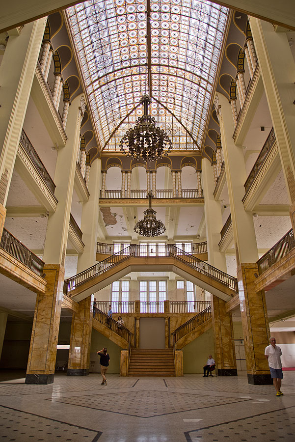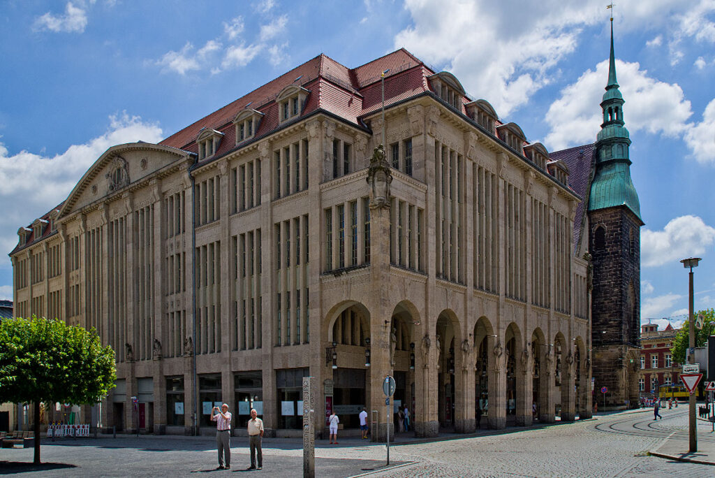 Gleich nebenan steht das alte Kaufhaus, momentan zwar geschlossen, dafür aber als Filmkulisse auch aus internationalen Produktionen bekannt, zum Beispiel in der Komödie „Grand Hotel Budapest“. Die Stadt trägt daher auch den Beinamen „Görliwood“.