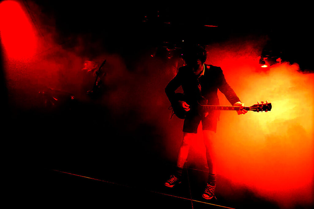Tausend Augenpaare sind auf ihn gerichtet. Auf ihn, den Frontmann, das Alphatier, ehemals brodelndes Testosteron, pures Charisma, seit Anbeginn. Sie sehen, wie er lässig im Vorbeigehen die Gitarre greift, seine geliebte rote Gibson SG und den Riemen um die Schulter legt. Er wankt dem vorderen Bühnenrand entgegen, dorthin, wo in der Mitte platziert der Mikrofonständer bereitsteht. Für ihn.