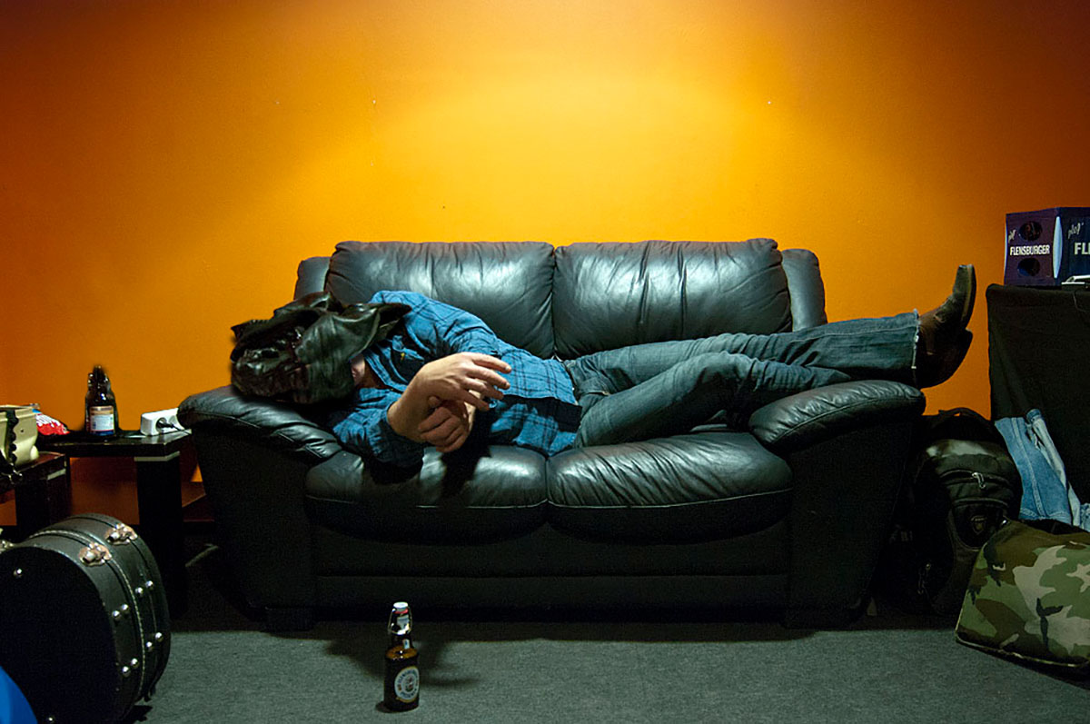 Quer auf der alten schwarzen Ledercouch lag er da, hinten in der Künstlergarderobe, im Backstage-Bereich des Kreiskulturhauses „Franz-Joseph Grummelmann“ von Schlimmersdorf: Johnny, der gealterte Rockstar. Einst spielte er auf großen Bühnen, damals in den Siebzigern, zur Hochzeit des Glam Rocks, als die Kostüme noch bunt, die Scheinwerfer hell und die Groupies willig waren.