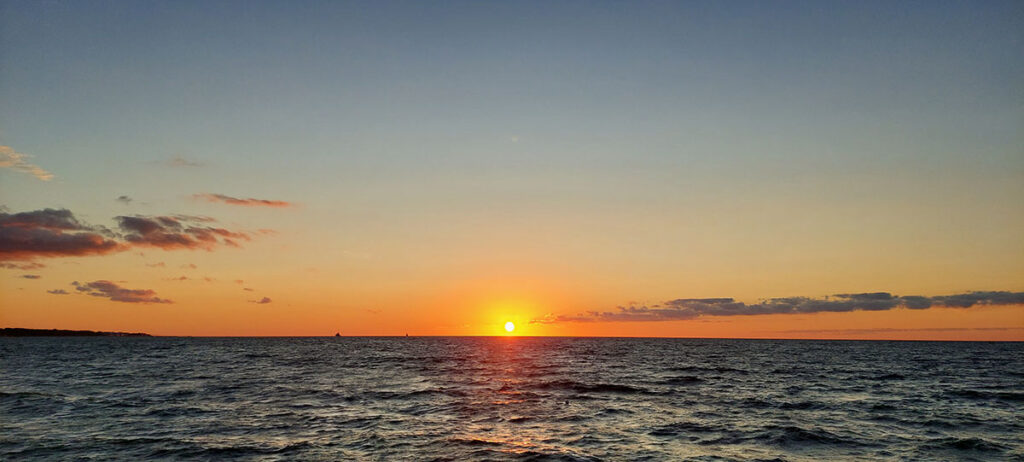 Gestern regnete es den ganzen Tag, hier oben an der Ostsee. Und heute vormittag auch noch. Aber der aufkommende Sturm blies die Wolken später weg und brachte uns den blauen Himmel zurück. Die Sonne bedankte sich soeben dafür mit einem prächtigen Sonnenuntergang: