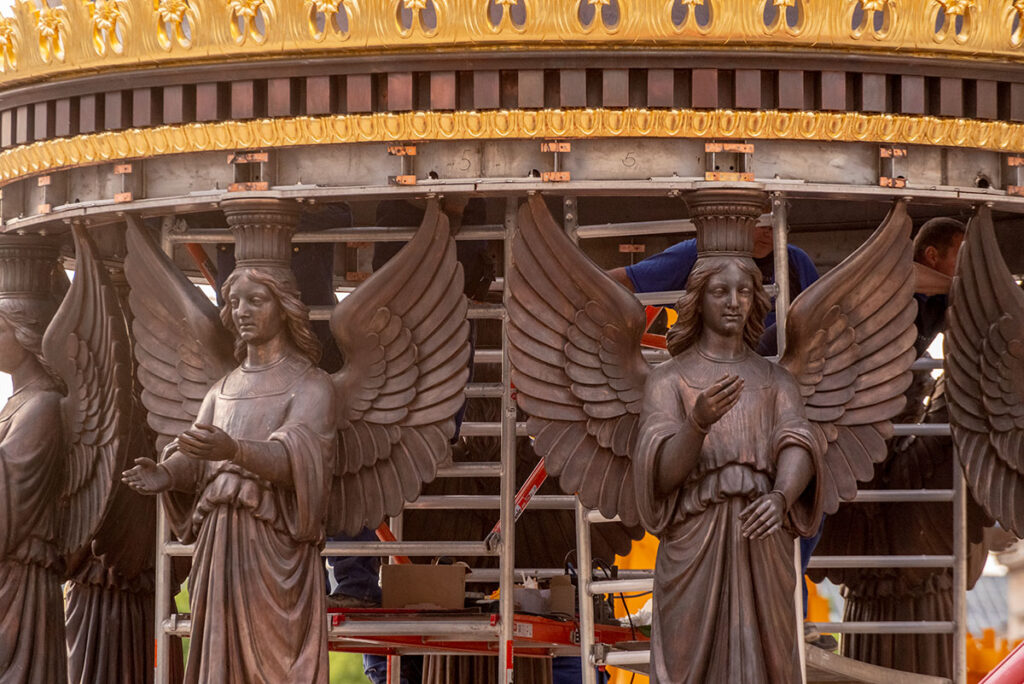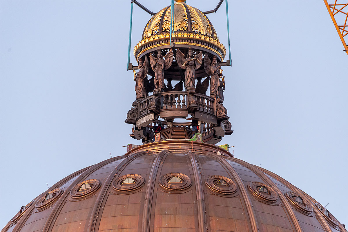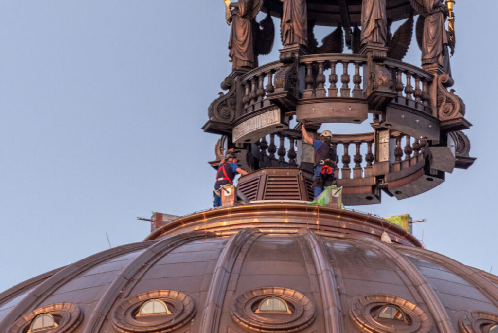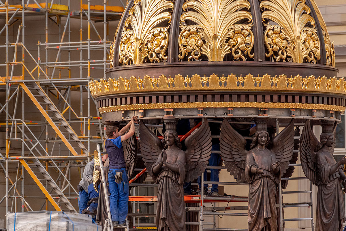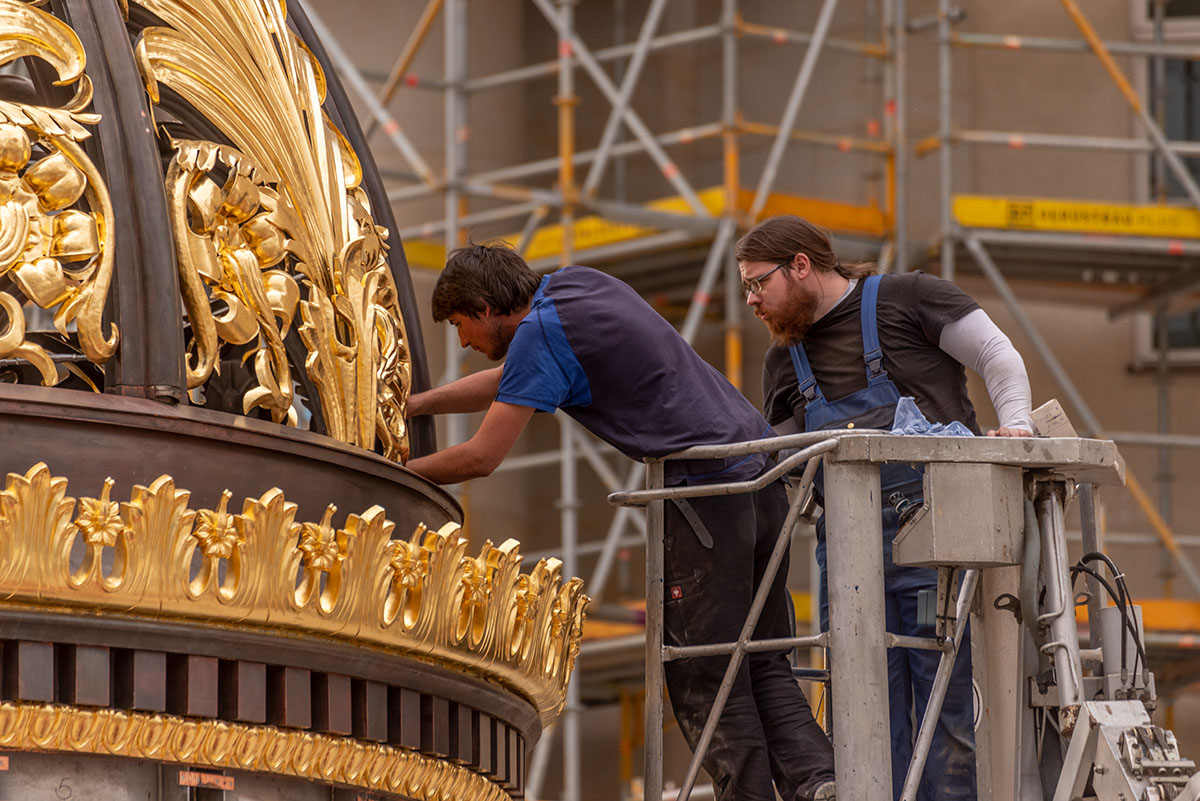 Heute gab’s Beschwerden. Ich hätte die Bilder der Krönung noch gar nicht veröffentlicht. Die Krönung des neu errichteten Berliner Stadtschlosses. Das stimmt zwar nicht ganz, in einem Fotoforum hatte ich sie bereits kurz nach dem freudigen Ereignis feierlich präsentiert, nur eben nicht hier, in diesem Blog. Nichts ist so alt, wie die News von gestern. Und die Bilder der Krönung sind inzwischen schon über drei Jahre alt. Aber vielleicht findet Ihr ja trotzdem Gefallen daran. Das letzte Bild mit dem grünen Dach ist übrigens gephotoshopt, wie man heutzutage sagt. Das Dach ist künstlich eingefärbt, zeigt aber heute schon, wie es in ein paar Jahren aussehen wird, wenn die Kupferplatten Grünspan angesetzt haben werden.