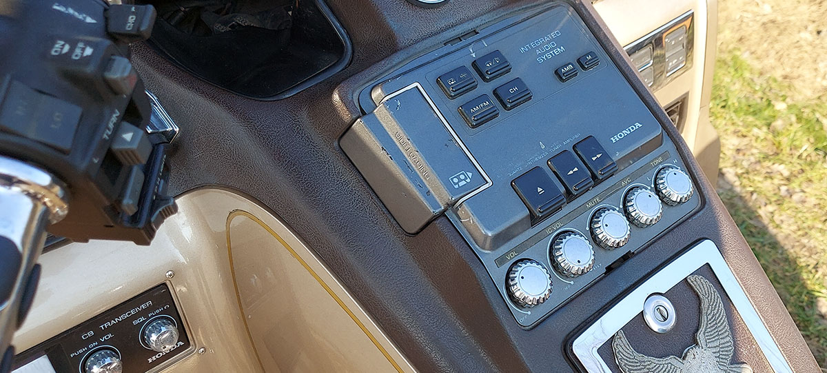 Stolz führte er auch den Rest der Maschine vor, vielleicht in der Hoffnung, es würde sich doch noch irgendwo ein passender Führerschein anfinden, warf kurz den (erfreulich leisen) Motor an, zeigte die Geräumigkeit der vielen Bordkoffer und das CB-Funkgerät, das inzwischen wohl nur noch Rauschen empfangen dürfte, weil die breite Motorradfahrermasse inzwischen handelsübliche Handys zur Nah- und Fernkommunikation bevorzugen dürfte.